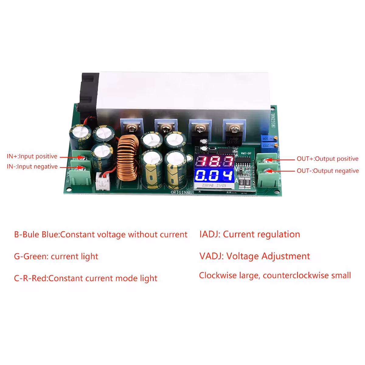 Tento DC12-80V 20A step-down modul (snižující napětí) je nastavitelný zdroj, ideální pro elektronické projekty vyžadující konstantní napětí a proud. Disponuje digitálním displejem pro napětí a proud, což umožňuje jednoduché a přesné používání. Účinnost dosahuje až 93% a prémiové materiály zajišťují odolnost a spolehlivost.