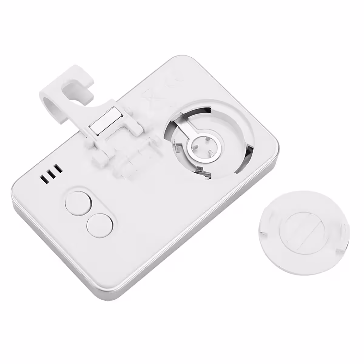 Flexibilní montáž: 3 možnosti upevnění – sklápěcí stojánek na stůl, háček pro police, magnet pro kovové povrchy.