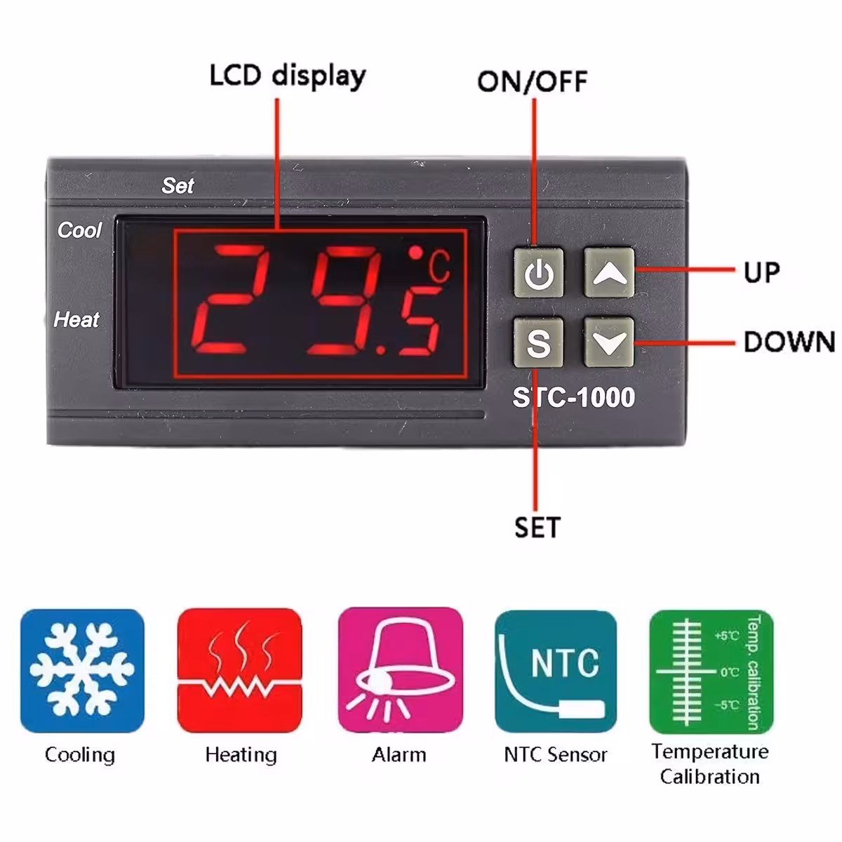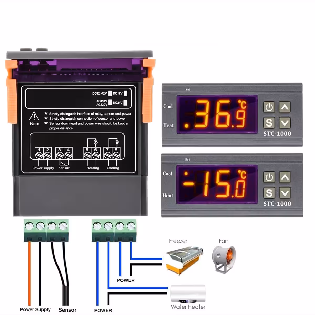 STC-1000 je jeden z nejpopulárnějších digitálních regulátorů teploty, ideální pro projekty HVAC, lednice, mrazáky, fermentaci, řízení radiátorů a průmyslové aplikace. Pracuje s napájením AC 110–220V a poskytuje přesnou regulaci v rozsahu -50 až 99°C pomocí vodotěsného senzoru NTC 10K.