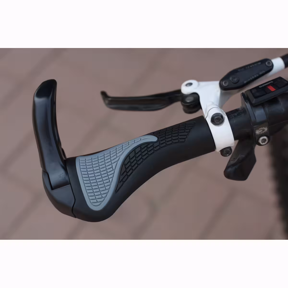 Černé MTB ergonomické gripy na řidítka kola a elektrické koloběžky s lock-on a rohy