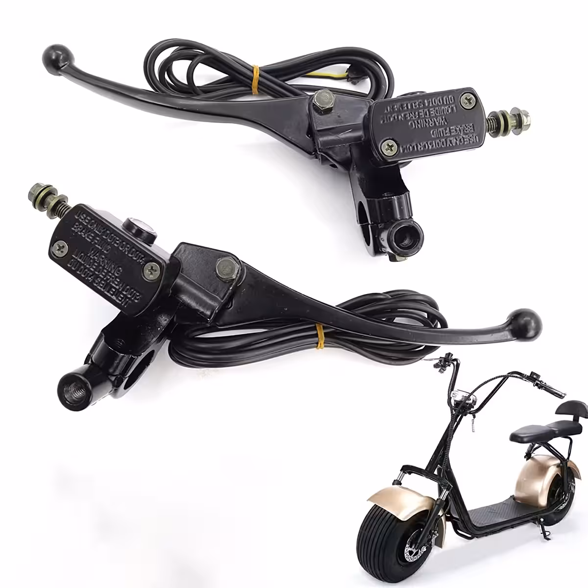 Hydraulická brzdová páčka kompatibilní s jakýmkoli elektrickým skútrem se závitem M8, včetně modelů Citycoco a Harley. K dispozici pro levou nebo pravou stranu.