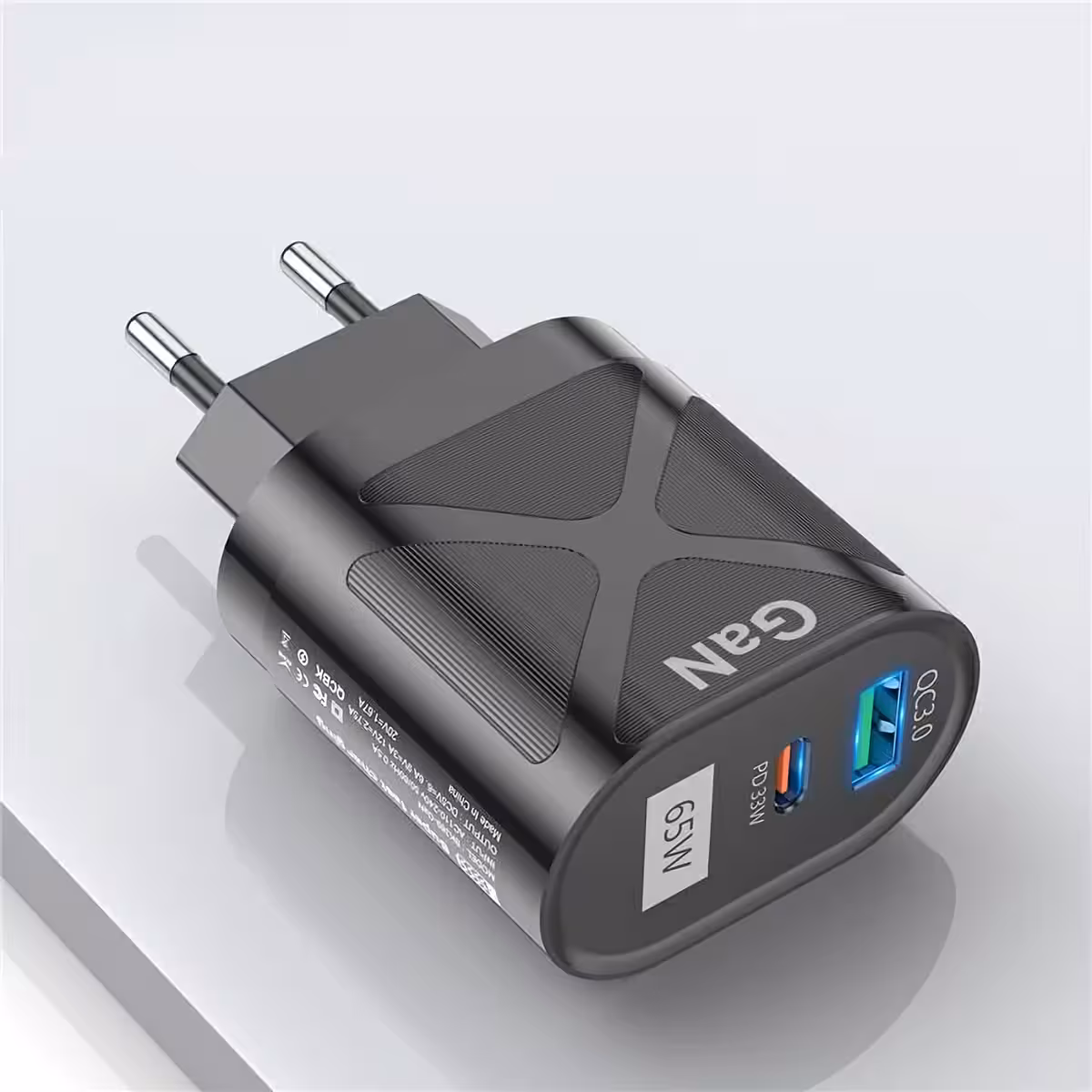 65W GaN nabíječka se dvěma porty (USB-C PD & USB-A QC 3.0) – ideální řešení pro rychlé a efektivní nabíjení telefonů a tabletů Apple, Samsung, Android a dalších moderních zařízení.
