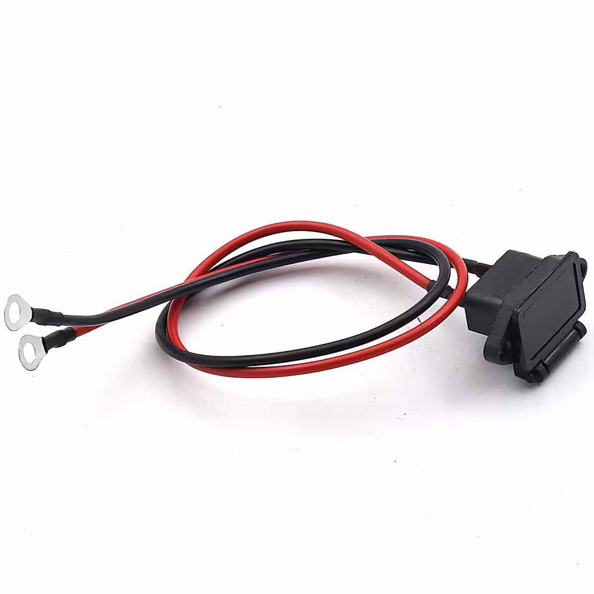 Napájecí kabel o délce 60 cm pro elektrické skútry Citycoco a Harley, s 3pinovým konektorem a ochranou proti vodě pomocí pružinové krytky. Zajišťuje rychlé a bezpečné připojení mezi baterií skútru a napájecím systémem.
