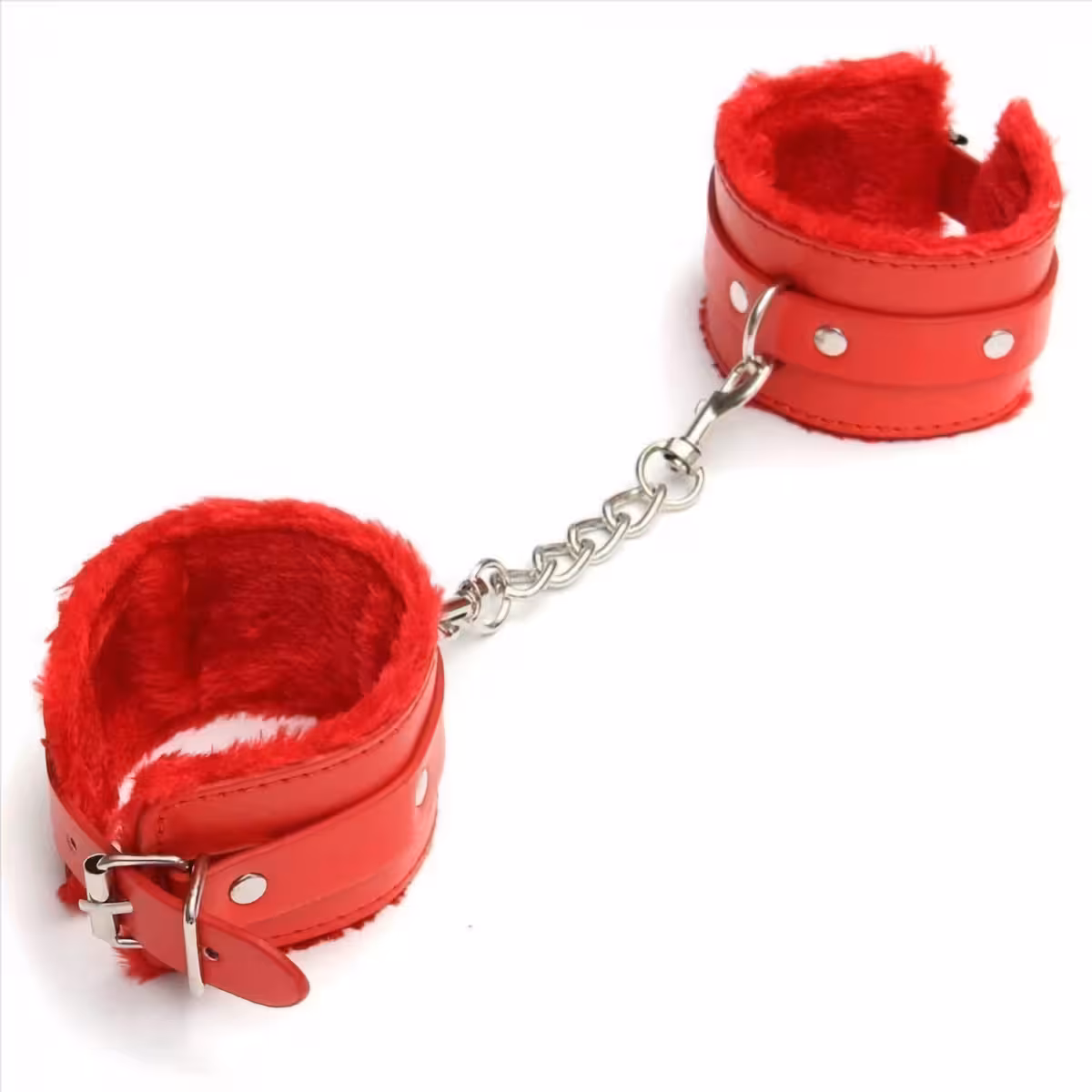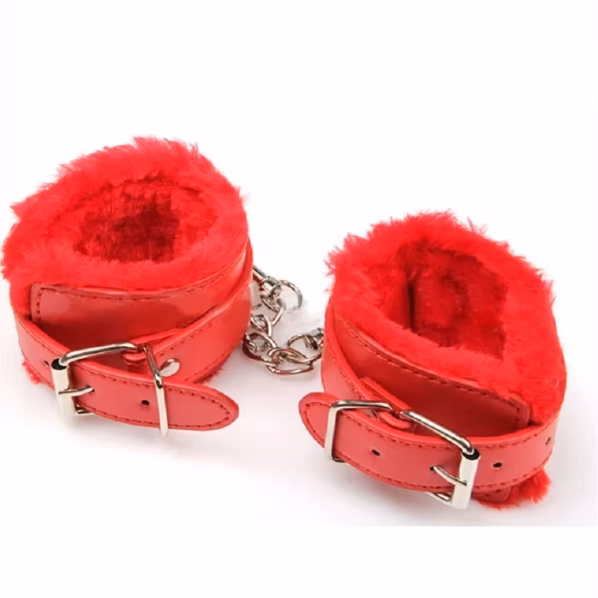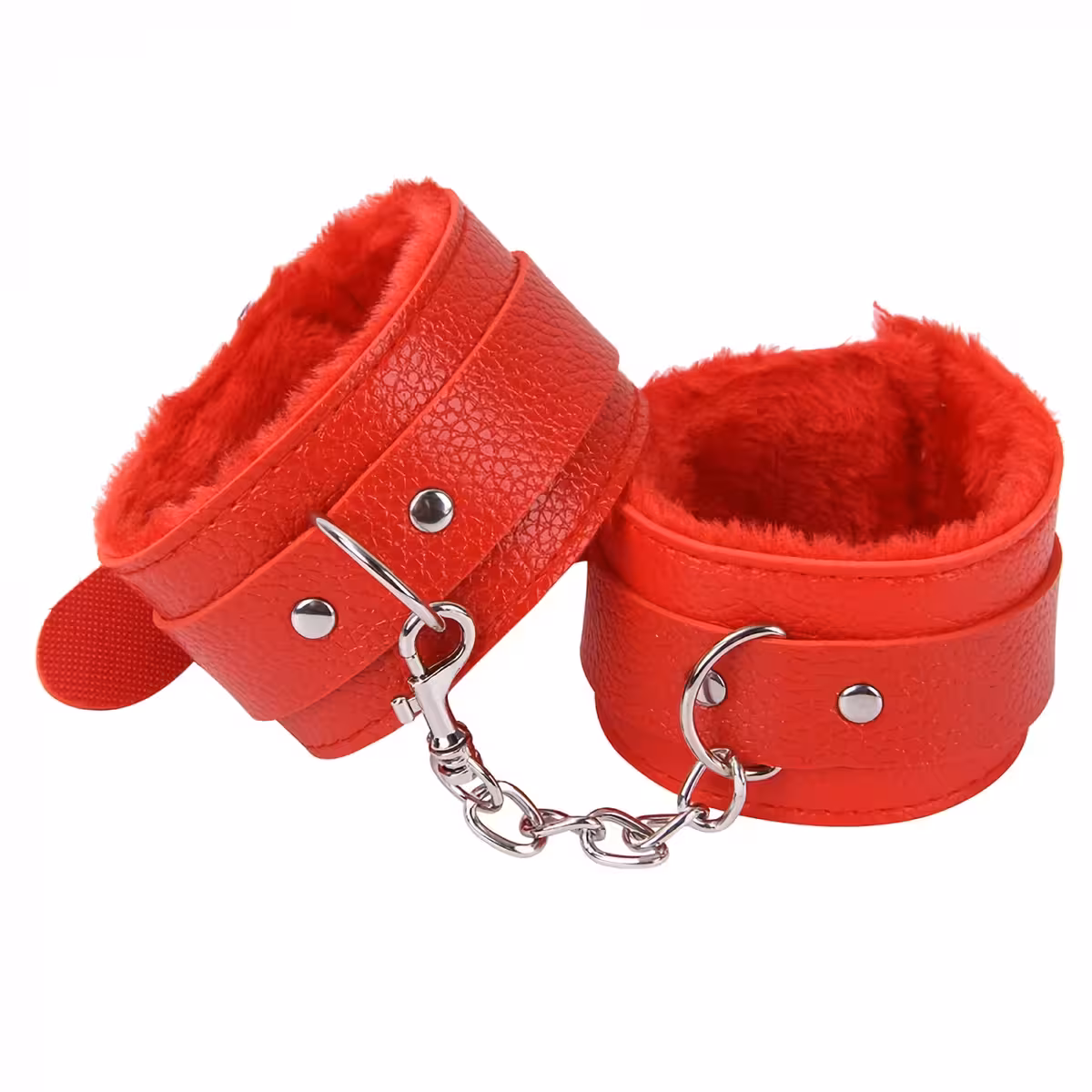 BDSM pouta s řetězem, měkký plyš červený nebo černý – Profesionální kožená pouta pro erotické hry