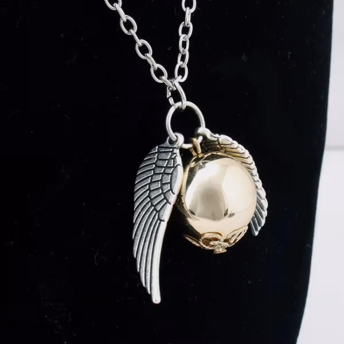 Tento přívěsek s motivem Harryho Pottera představuje kvídíčový míč „Zlatonka“, s elegantním designem zahrnujícím andělské křídlo, symbolizující svobodu a magii.