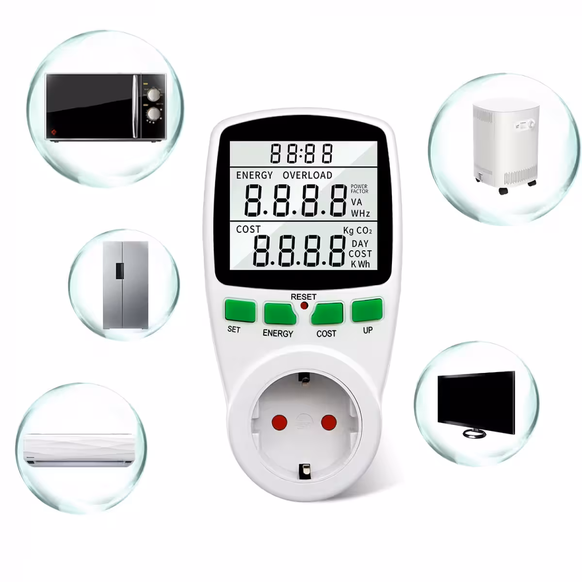 Toto zařízení wattmetr umožňuje přesné měření elektrických parametrů pro jakékoliv zařízení připojené do zásuvky. Sledujte skutečnou spotřebu elektrické energie vašich spotřebičů doma nebo v kanceláři a optimalizujte tak náklady.