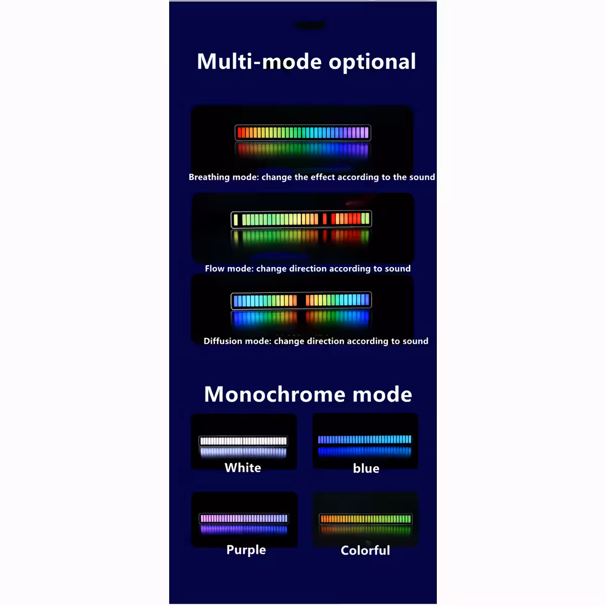 Díky integrovanému vysoce citlivému mikrofonu světla tančí v reálném čase podle rytmu hudby. Je to perfektní doplněk pro milovníky zvuku, hraní her, audio tvorbu nebo personalizovanou atmosféru.
