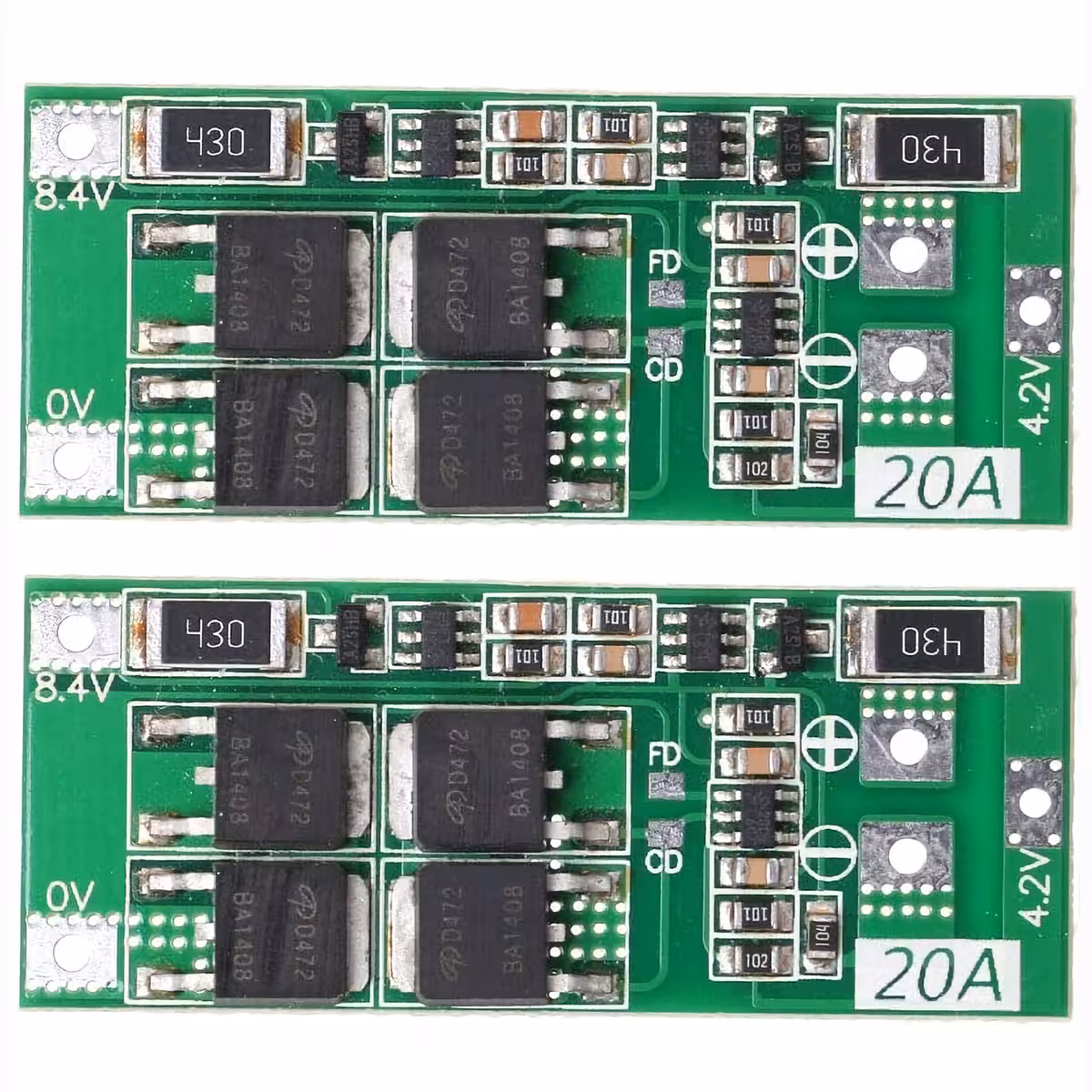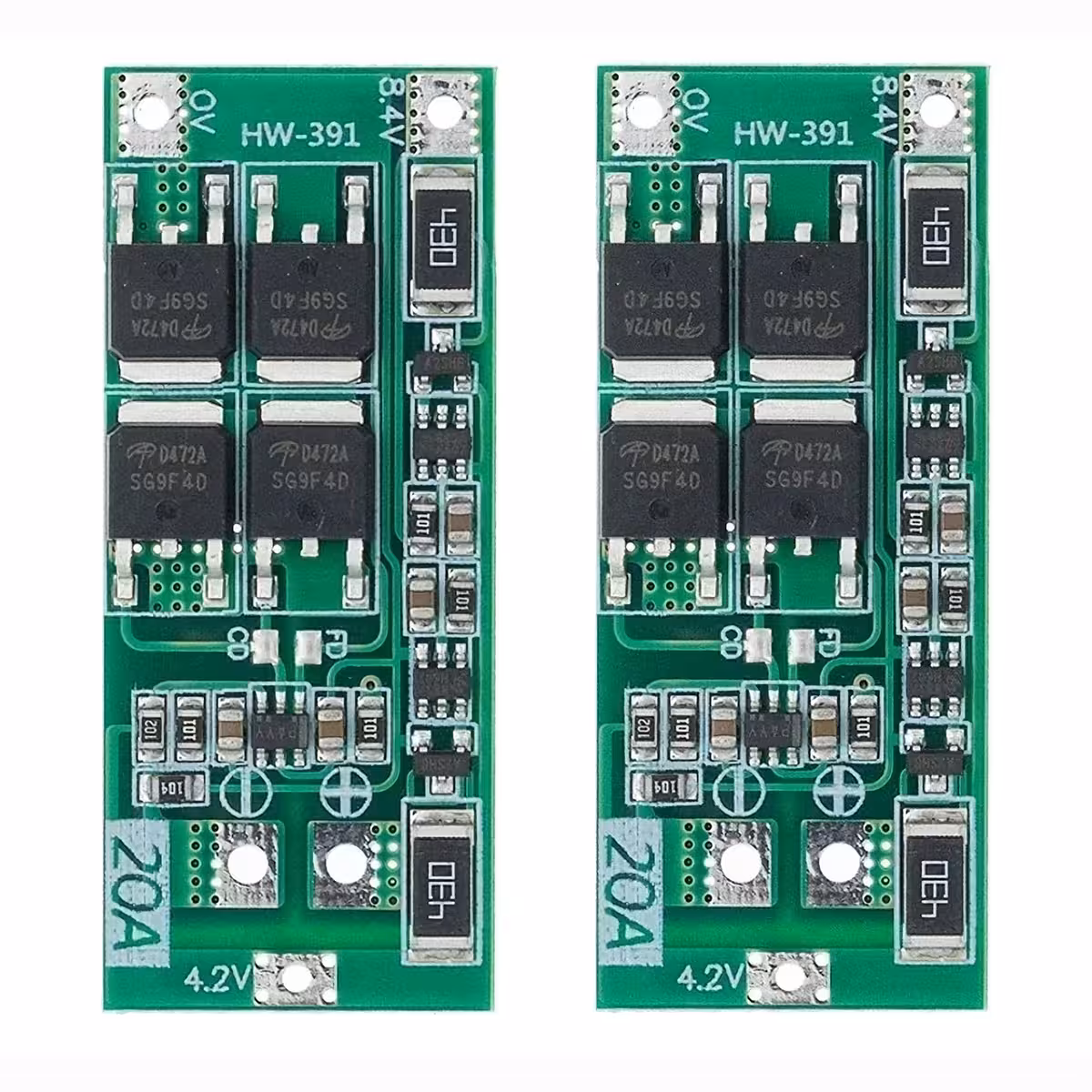 Sada obsahuje 2 desky BMS 2S 20A (7.4V nominální / 8.4V plné) s funkcí vyrovnávání, navržené pro ochranu a správu Li-Ion balíčků (včetně 18650 a 26650). Poskytuje kompletní ochrany: proti přebití, podbití, přetížení, zkratu a automatickému resetu. Kompaktní rozměry, ideální pro DIY projekty a přenosné zařízení.