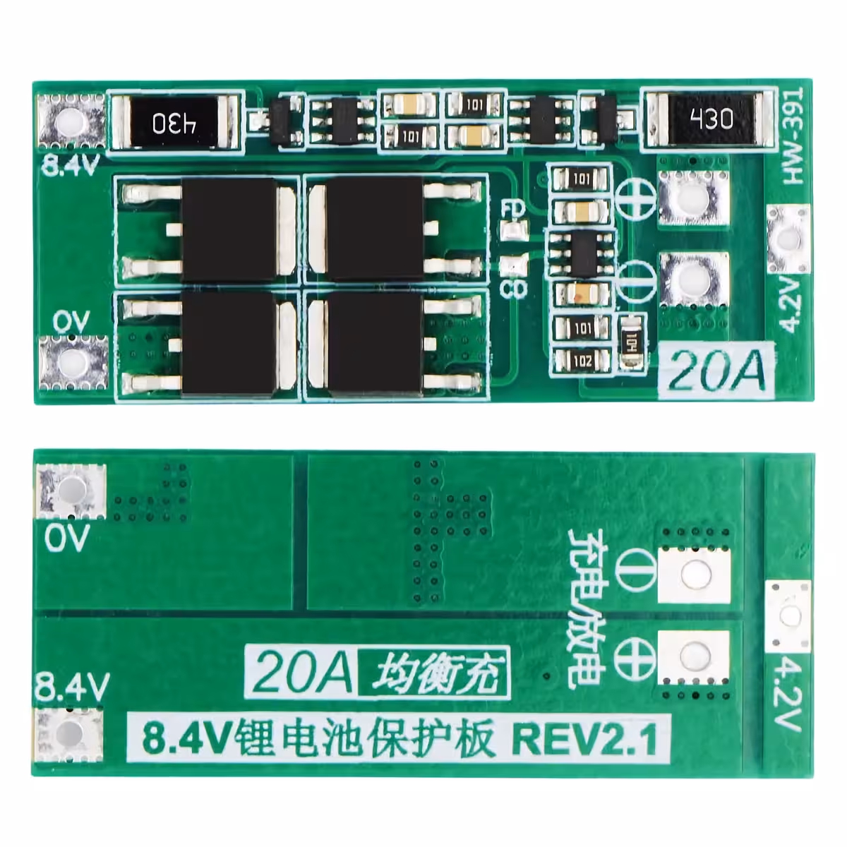 • Jednoduché připojení — jasně označené body pro připojení: 0V, 4.2V, 8.4V a výstupní svorky +/−.