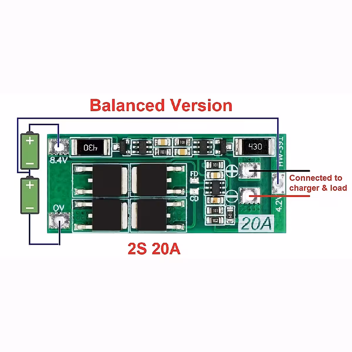 Sada 2 ks – BMS Modul 2S 20A 7,4V s Balancováním – Schéma v Balíčku