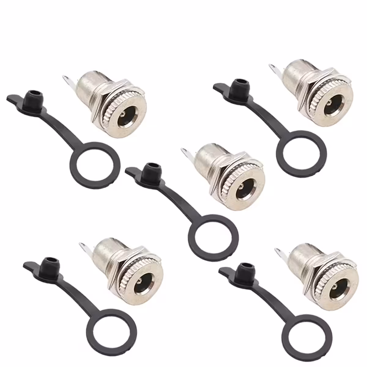 Tato Sada 5 kusů – DC Napájecí konektor 12V 5,5mm x 2,1mm – Samice poskytuje bezpečné a stabilní spojení pro všechny vaše elektronické projekty a zařízení využívající DC 12V. Ideální pro: adaptéry, bezpečnostní kamery, routery, LED diody nebo jiná elektronická zařízení vyžadující bezpečné napájení.