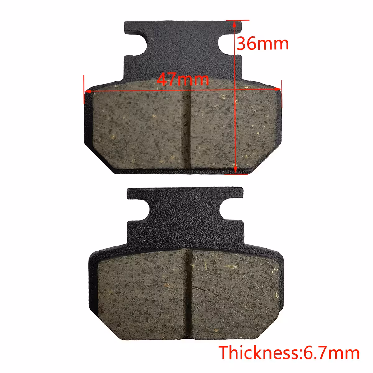 Změřte rozměry destiček (47×36×6,7 mm nebo 68×36×6,7 mm) a ověřte kompatibilitu.