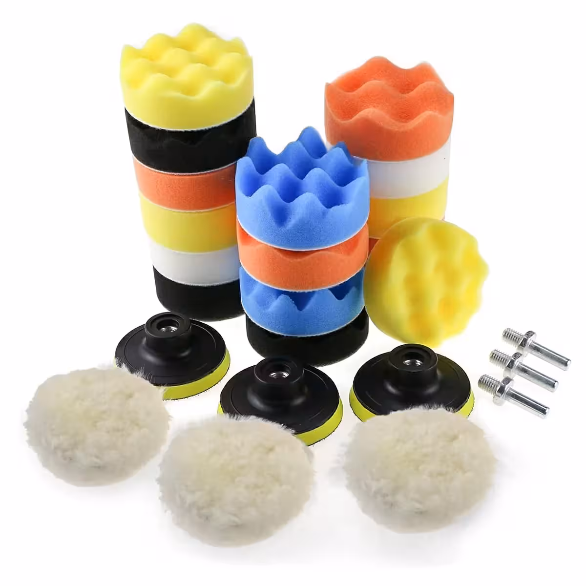 Tato kompletní sada polírovacích hubek a kotoučů je navržena pro leštění a údržbu lakovaných povrchů, jako jsou karoserie automobilů, plastové díly, kov nebo sklo. Lze ji použít s jakoukoli vrtačkou nebo leštičkou díky 3 přiloženým adaptérům.