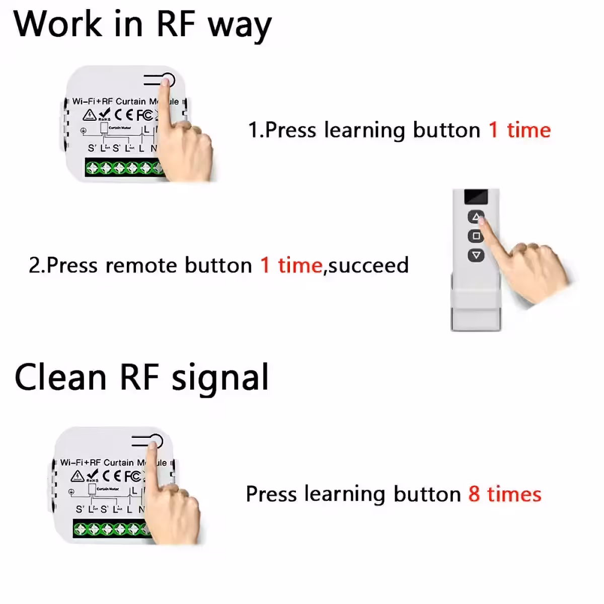 - 1 x WiFi + RF řídicí jednotka pro rolety, žaluzie, závěsy, záclony, markýzy atd.
