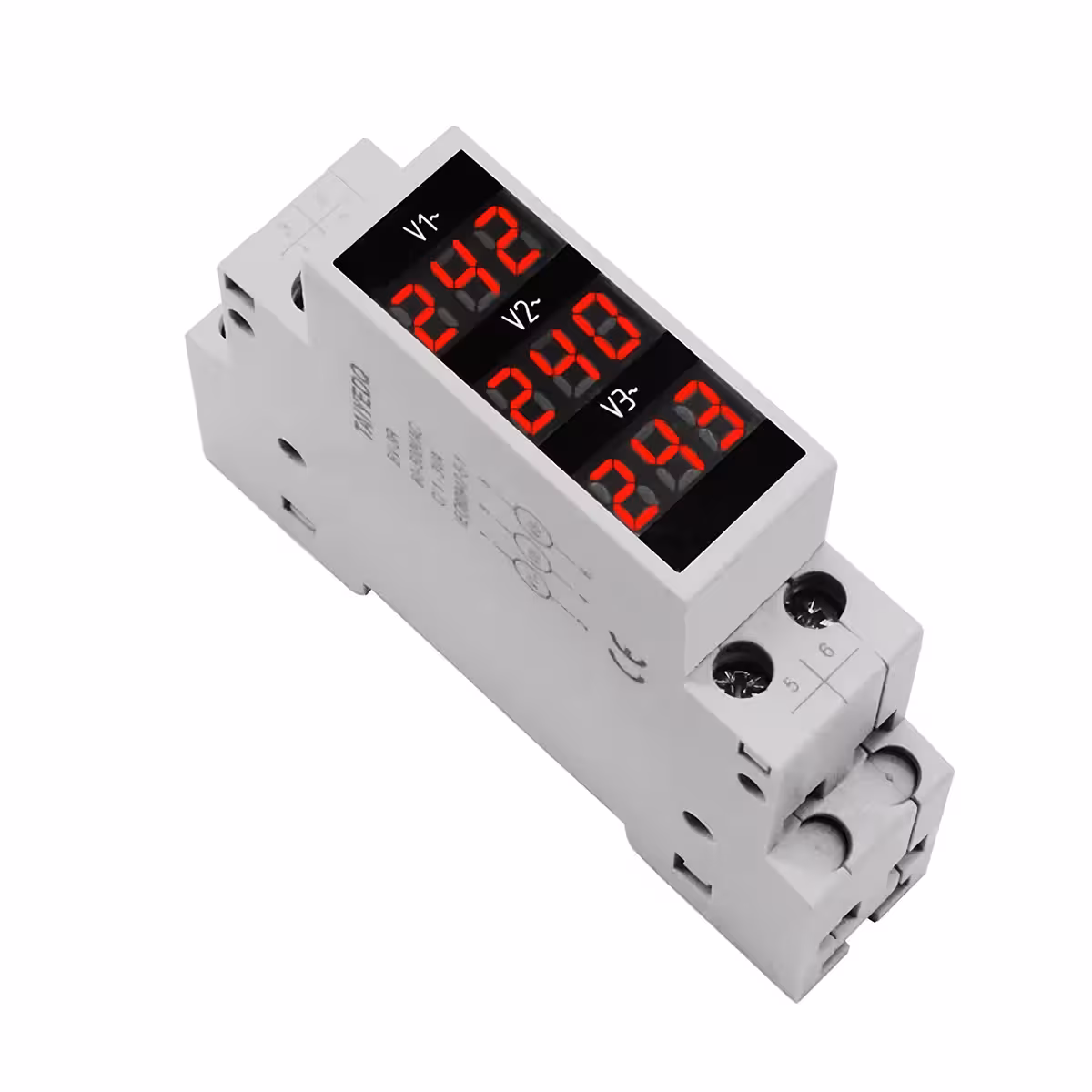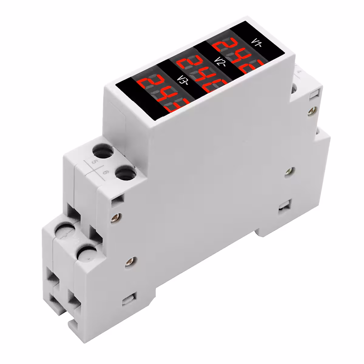 Tento digitální třífázový voltmetr je ideální pro měření střídavého elektrického napětí v třífázových systémech s měřicím rozsahem od 80 V do 500 V. Díky kompaktnímu provedení o šířce 18 mm lze zařízení snadno instalovat na DIN lištu, což z něj činí ideální řešení pro průmyslové rozvaděče a automatizační aplikace.