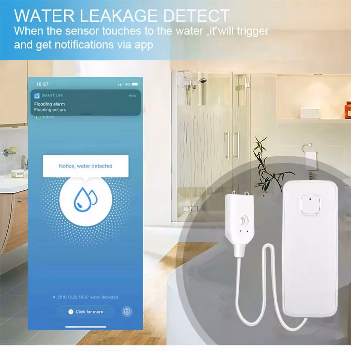 Tento chytrý WiFi senzor úniku vody poskytuje okamžitou ochranu před úniky vody,